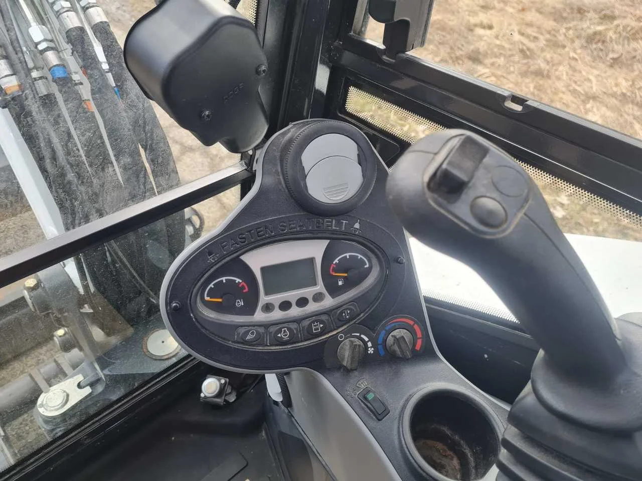 Livré avec 3 godets, conduites hydrauliques et lame de bulldozer.